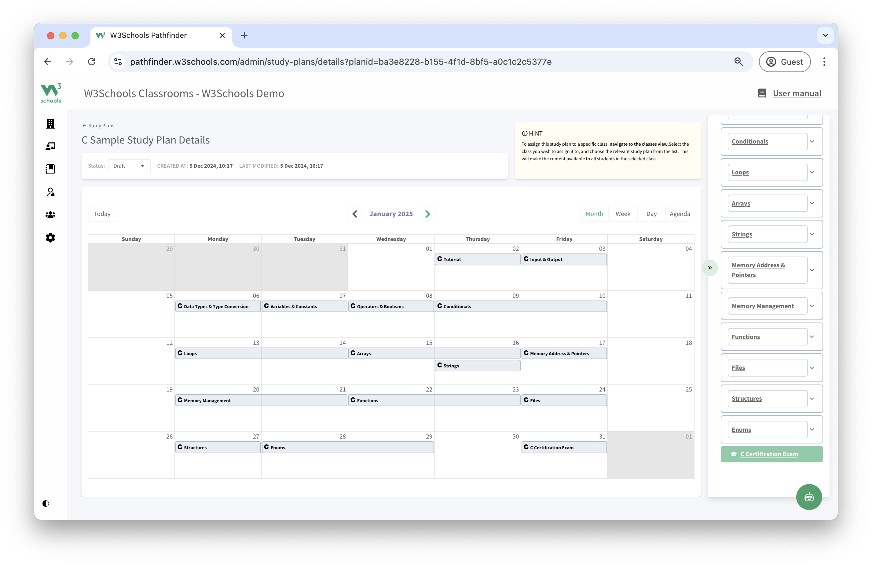 Save time with pre-built teacher materials and study plans. Easily organize your class with a timeline from the introduction of C to the final exam.