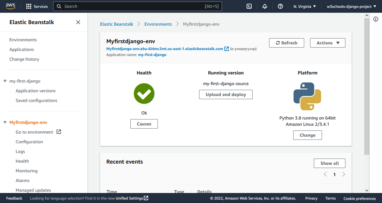 Log into your Amazon Web Services account, and find your project under the "Elastic Beanstalk" application: