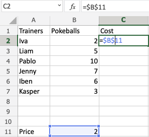 Congratulations! You successfully calculated the prices for the Pokeballs using an absolute reference.
