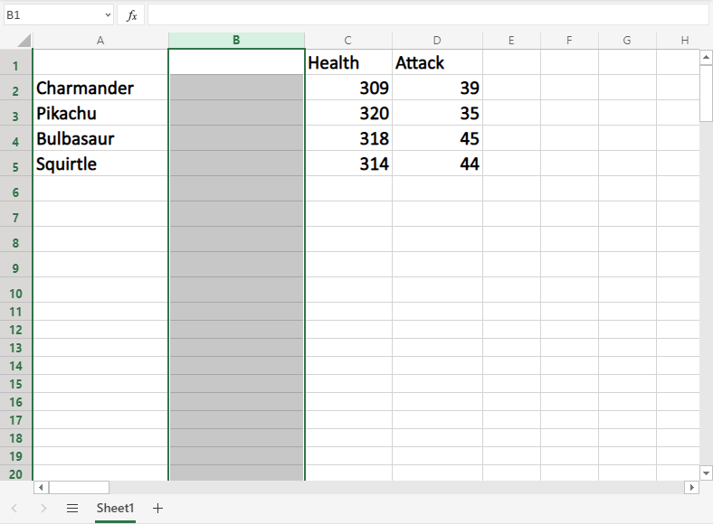 Next, we need to get some Pokemon trainers in there. Type or copy the following data in the new column B: