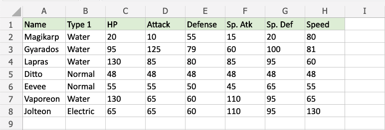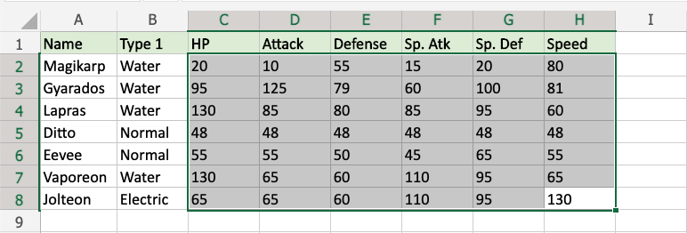 Notice that Gyarados' Defense and Special Defense, which are 79 and 100, are highlighted.