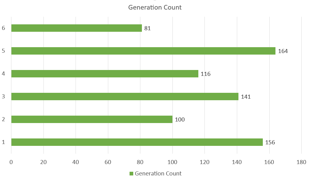 Generation 1 is shown in blue and generation 2 is shown in orange.