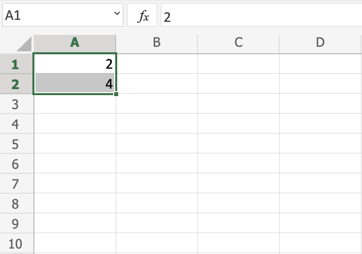 Let's use the fill function from A1:A10 to see what happens. Remember to mark both values before you fill the range.