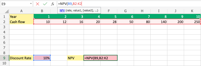 It is typed =NPV