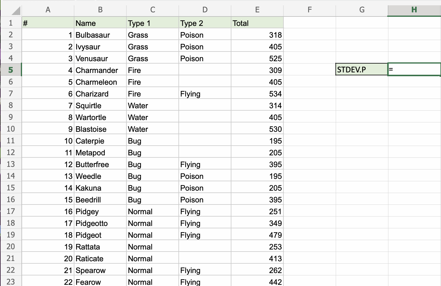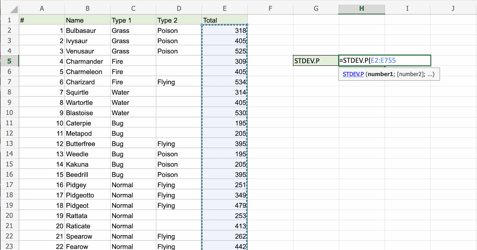 4. Select a range (E2:E755), including all Pokemons