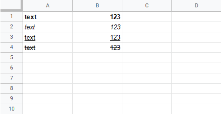 Google Sheets Font Characteristics