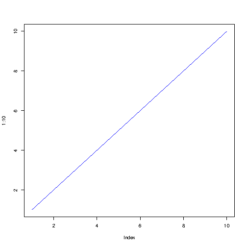 plot(1:10, type="l", col="blue")