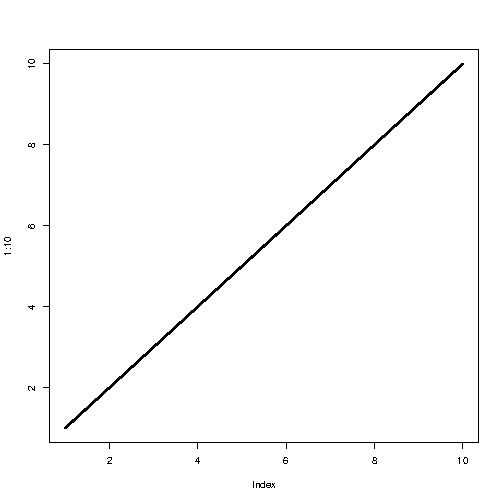 plot(1:10, type="l", lwd=2)